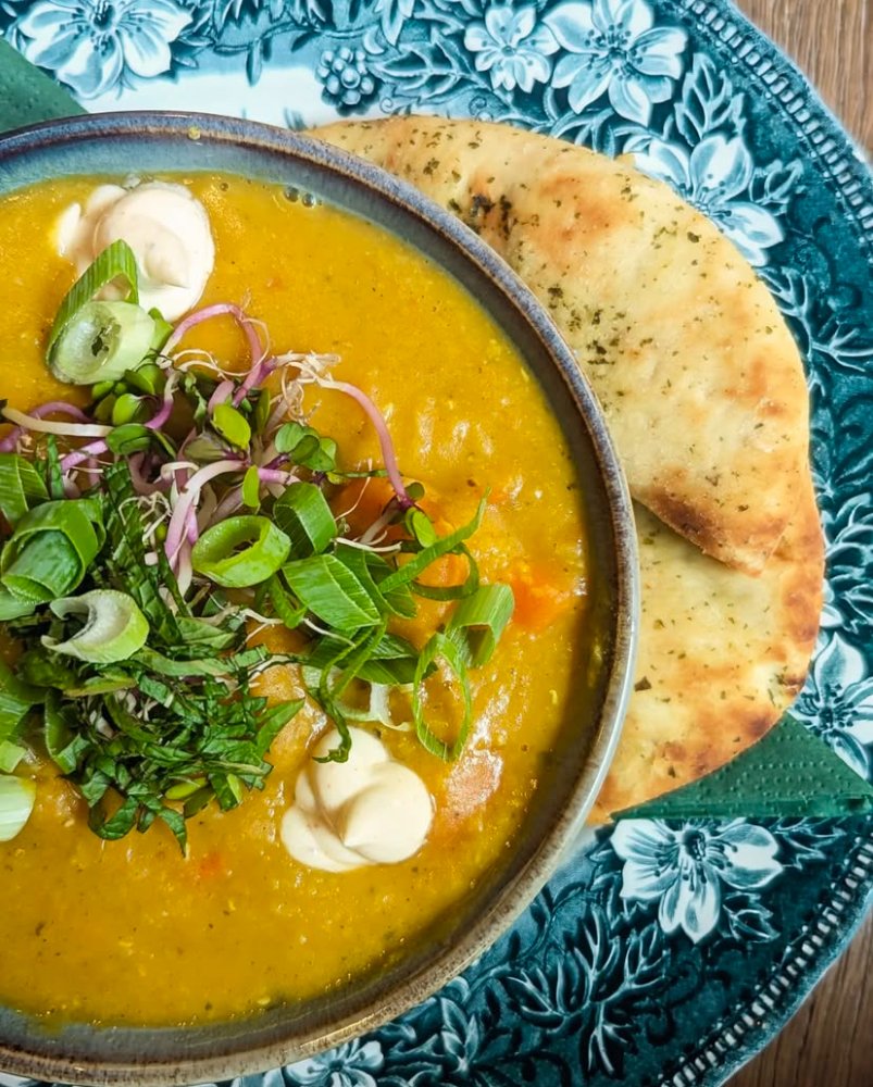 Tom Ka Kai soep met bean sprouts en gebakken uitjes