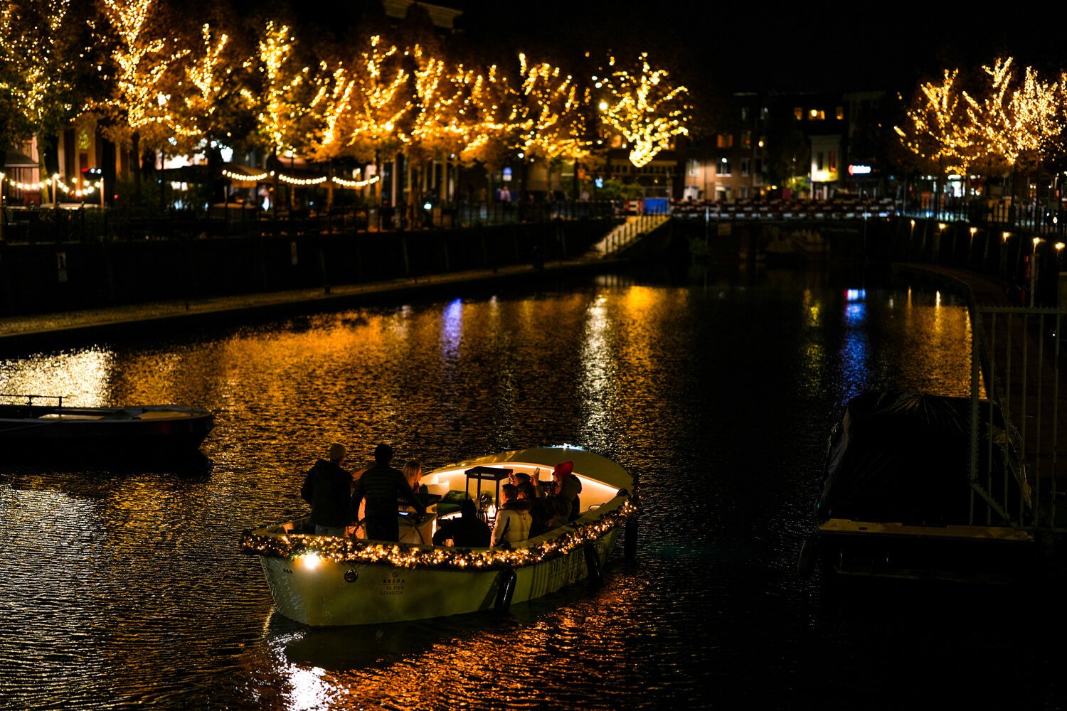 Stap van november t/m februari aan boord van de knusse Winter BBQ Boot en beleef een unieke combinatie van warmte, gezelligheid en culinair genieten. Terwijl je op onze versierde, verwarmde sloep door de sfeervol verlichte singels van Breda vaart, geniet je van een volledig verzorgde winterbarbecue met bier, wijn en fris. Het ideale uitje op een knusse winteravond.