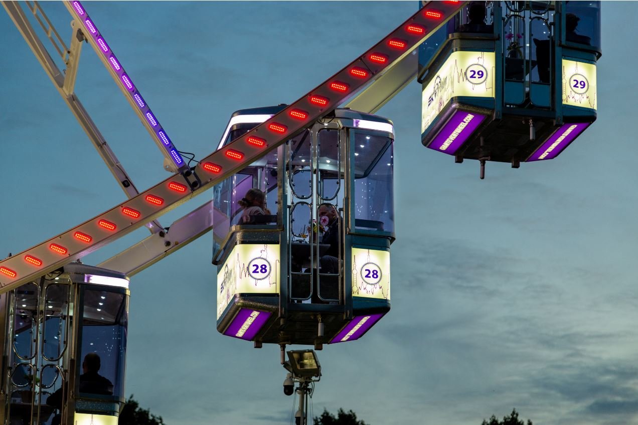 Op 50 meter hoogte genieten van de prachtige binnenstad van Breda en daarbij een lekker hapje en drankje in je eigen privé restaurant. Dit alles in het grootste reuzenrad van Nederland. Wat wil je nog meer? Van 15 mei tot en met 27 juni kun je reserveren om in je eigen gondel te ontbijten, lunchen, dineren of borrelen. Je zult hier de verdraaid lekkere gerechten van Café Noir, Coffeelab, Suikerkist en Bakker Joppen op de kaart vinden. De kaart wisselt elke drie weken, dus je kunt gewoon nog een keer meedraaien.
