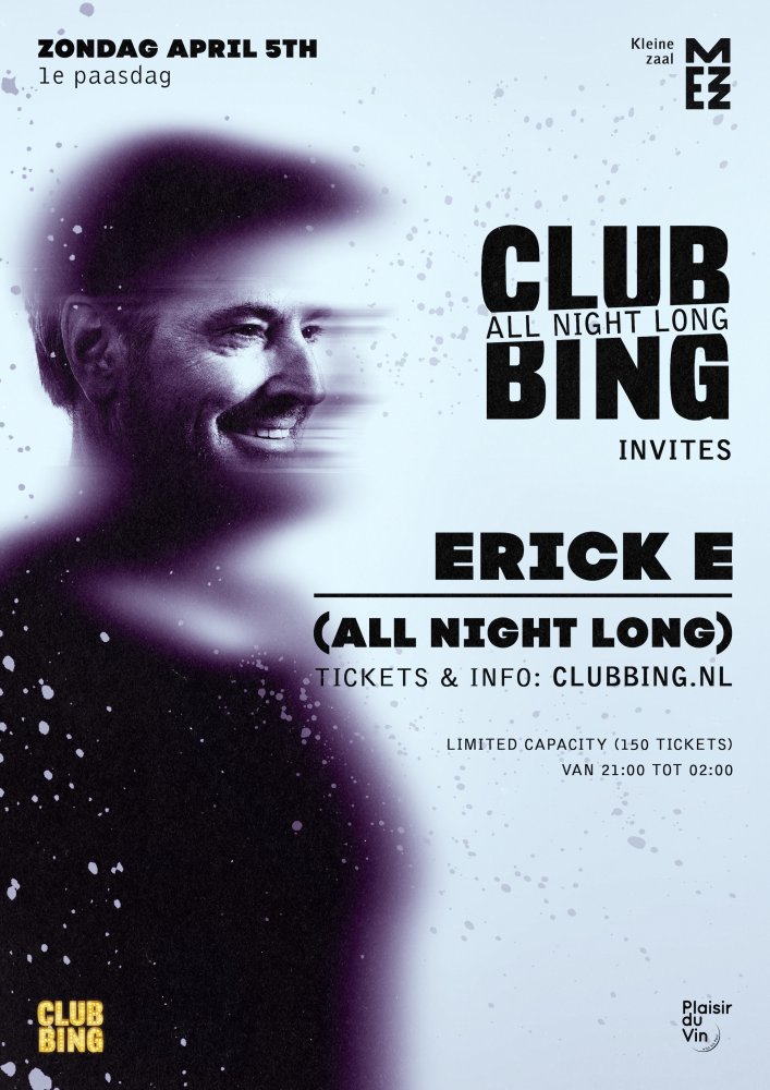 Sindsdien is Erick E een vaste waarde in clubs, op festivals en beach parties door heel Nederland. Op zondag 5 april (eerste paasdag) staat hij in MEZZ Breda voor een exclusieve All Night Long set van 21.00 tot 02.00 uur. Eén DJ, vijf uur lang en één muzikale reis. Koop hier je tickets.