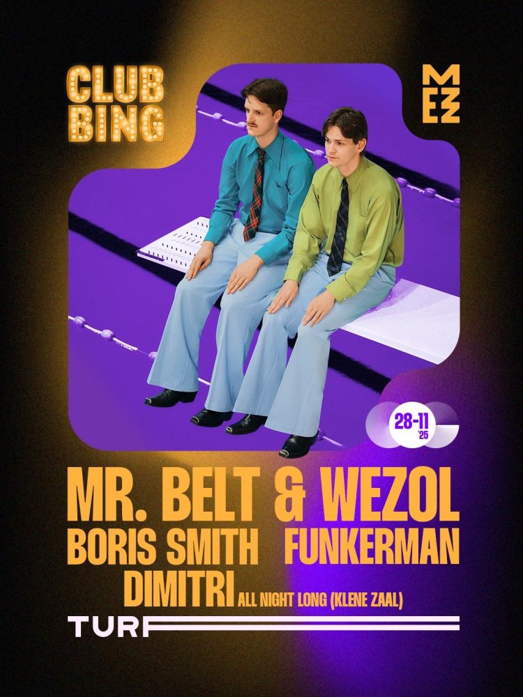 Op vrijdag 28 november strijkt Clubbing neer in Mezz voor een nacht vol house. Tijdens deze speciale editie van TURF by Night draaien Mr. Belt & Wezol een energieke set, samen met Boris Smit en Funkerman. In de kleine zaal verzorgt Dimitri een all night long set.