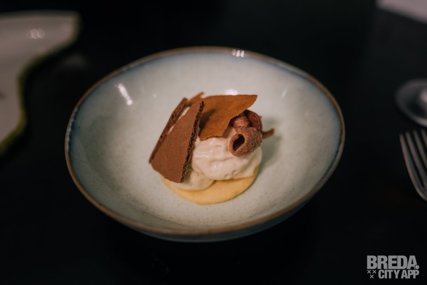 Op de kaart die op tafel staat met alle gerechten hebben we alvast gekeken met welke gerechten we dit prachtige menu af gaan sluiten. Het 11e gerecht is een combinatie van tallegio en peer, wat zorgt voor een prachtige combinatie. De mousse smelt meteen op je tong. Een mooi gerecht om het hartige deel mee af te sluiten voordat we overgaan tot de laatste 2 gerechten van het menu die zoet zijn.