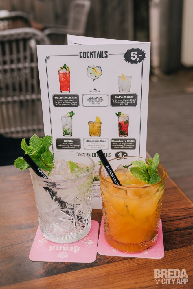 Het is weekend, dus het mag ;)! En cocktails voor €5,00?! Die slaan we niet over. Je vindt onder andere de klassiekers op de kaart, zoals een Gin Tonic en een Mojito, maar Bregje heeft ook een paar andere mooie mixen op de kaart staan. Wij kiezen de fris-zoete ‘Let’s Mango’ en de virgin ‘Split’ cocktail. De eerste is gemaakt van echte De Kuyper Mango, sweet & sour, limoen en spa rood en smaakt helemaal naar de zomer. De limoen en de mango doen het goed samen en de verhouding is mooi in balans. Ben je toch nog niet klaar voor alcohol? Dan is de virgin ‘Split’ absoluut een aanrader. De naam zegt het al, en inderdaad… het smaakt écht naar een split ijsje. De smaken van watermeloen, vanille, sinaasappel en limoen zijn allemaal terug te vinden in dit zomerse drankje. Geen fan van zoet? Kies dan voor een flesje cava, een fles pinot grigio, of pak even de speciaalbier kaart erbij. Er is voor ieder wat wils.