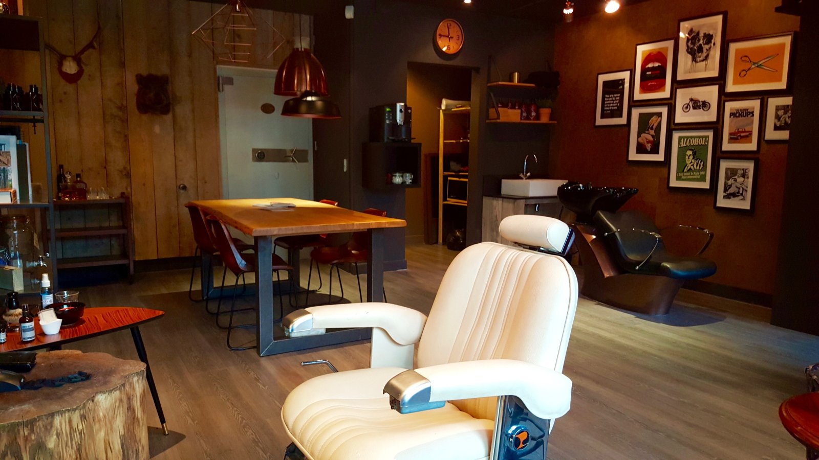 Dit straalt de zaak ook uit, het stoere, robuuste interieur verschilt sterk van de meeste kappers waar zowel mannen als vrouwen komen. De zaak oogt niet zoals de meeste barbiers, je treft er ook geen jaren 50 interieur maar een moderne look met een enkele knipoog naar het verleden. De sfeer is hedendaags en verwelkomend met een grote tafel waar de man kan plaatsnemen, genieten van koffie of whiskey, een goed boek of een sterk verhaal voor en na de knip of scheerbeurt.
