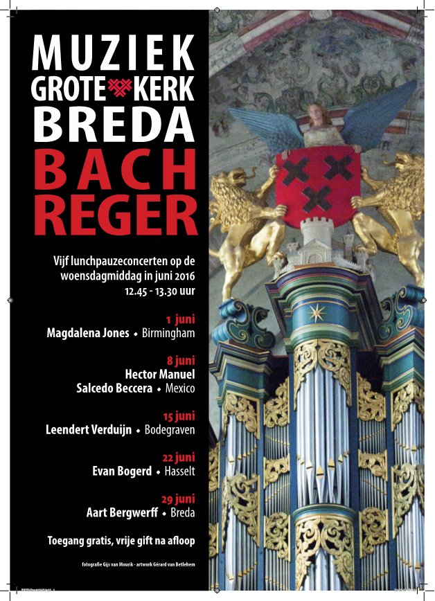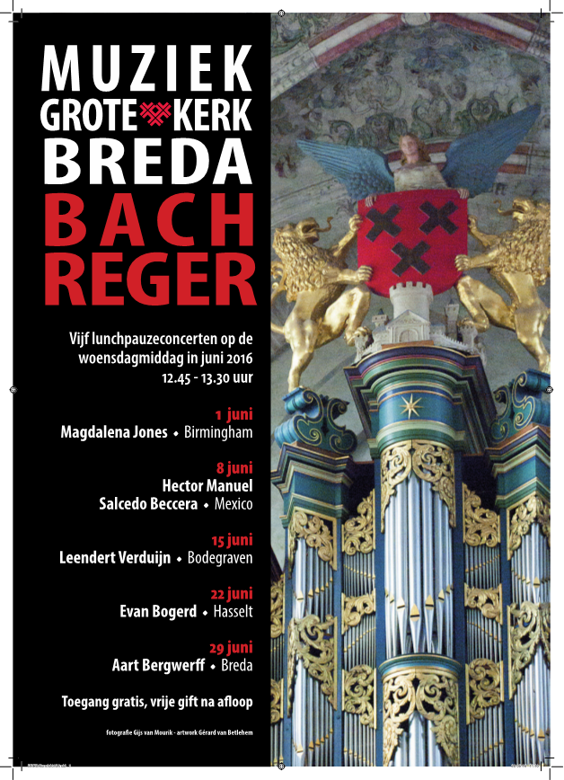 De serie concerten wordt op woensdag 29 juni afgesloten door Aart Bergwerff, Organist van de Grote Kerk Breda.