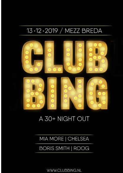 Voor een goede club moet je ver zoeken in Breda, daarom tovert Clubbing Mezz voor de zesde keer om tot een ware danstempel. Tijdens deze avond geniet je van sets van Mia More, Chelsea, Boris Smith en Roog! Dans de nacht door op de lekkerste dance, disco en house!