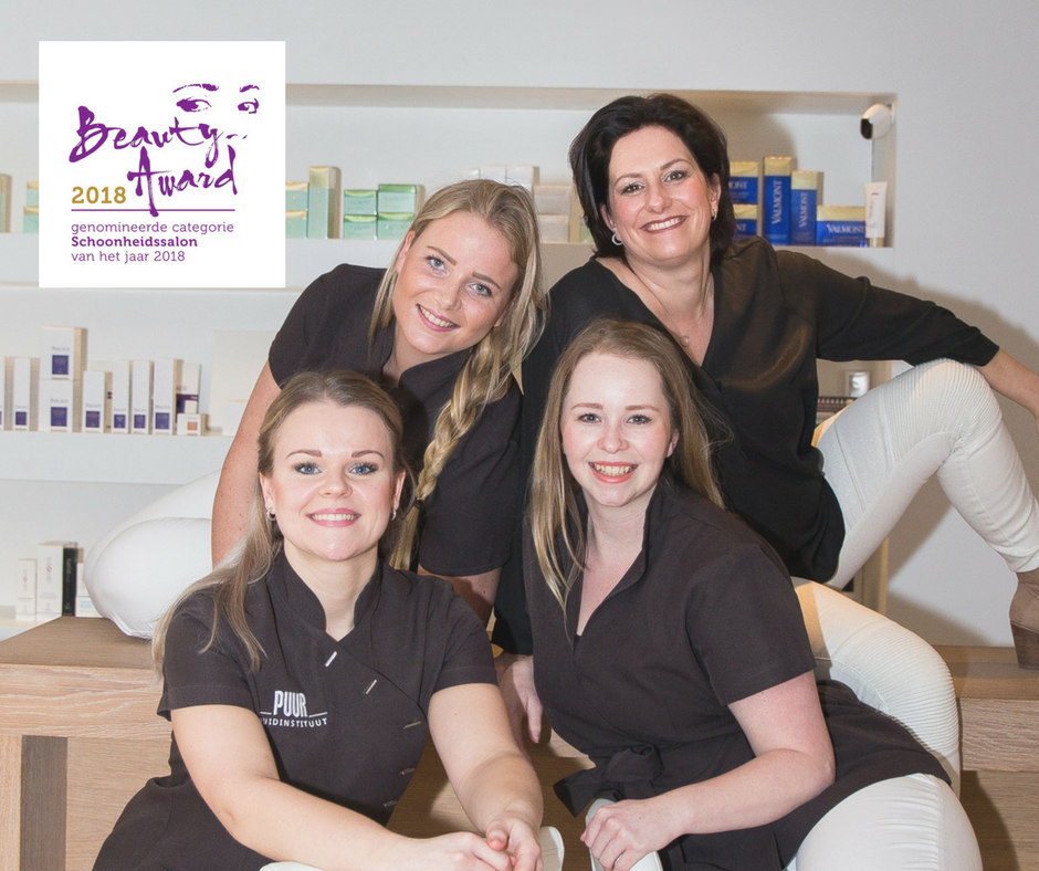 PUUR Huidinstituut heeft de felbegeerde nominatie ontvangen voor de categorie Beste Beauty Salon van het jaar 2018. In deze categorie strijden 4 overgebleven salons voor de titel Beste Beautysalon van het jaar. Een uitgebreide screening van de deelnemers, hun bedrijven en een diepte-interview geeft de doorslag. Er wordt hierbij gekeken naar de totale bedrijfsvoering. De winnaars worden zondag 22 april 2018 tijdens een grootse gala-uitreiking bekend gemaakt.