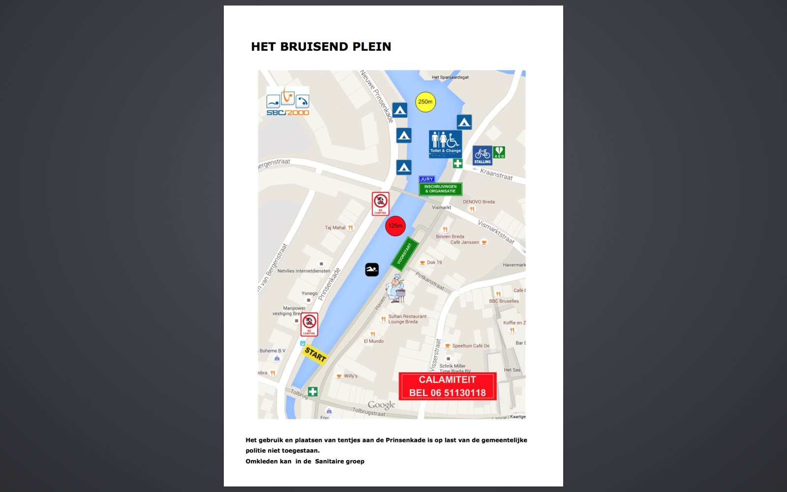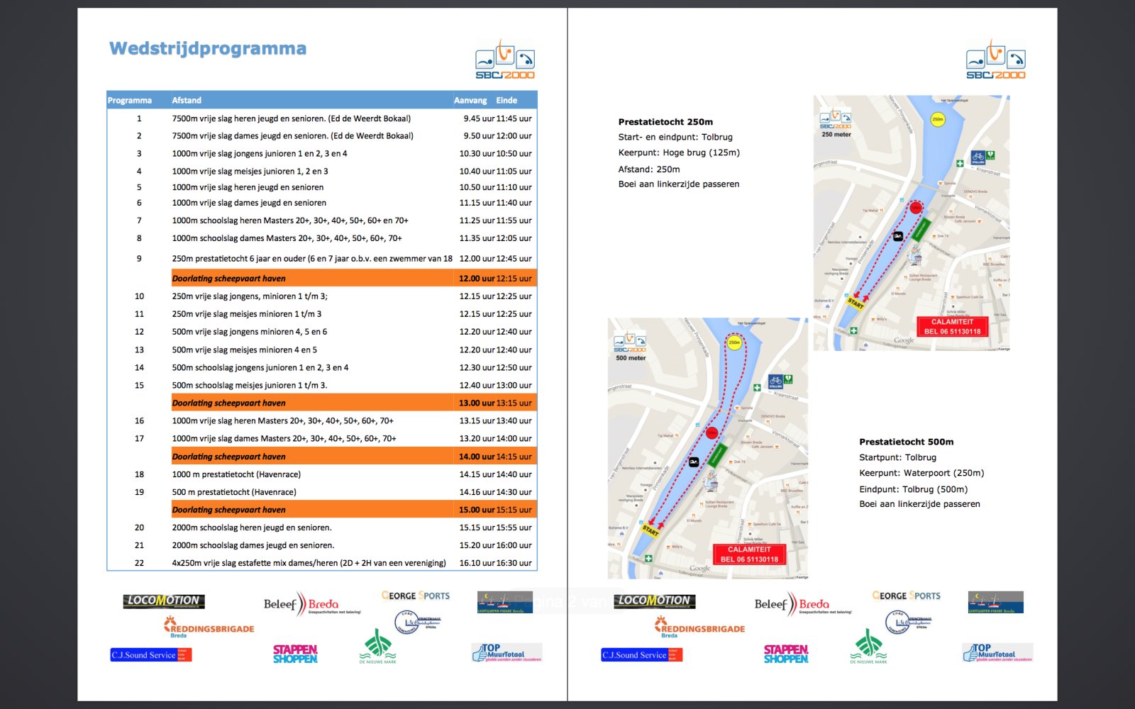 De korte afstanden zullen zich voornamelijk afspelen in de haven van Breda, terwijl het koningsnummer de singeltocht met een lengte van 7,5 kilometer wordt afgelegd door de singels van Breda. Voor alle afstanden zullen de start en de finish plaatsvinden in de binnenhaven ter hoogte van de Tolbrugstraat. naar verwachting zullen tussen de 450 en 500 deelnemers hun afstanden zwemmen.