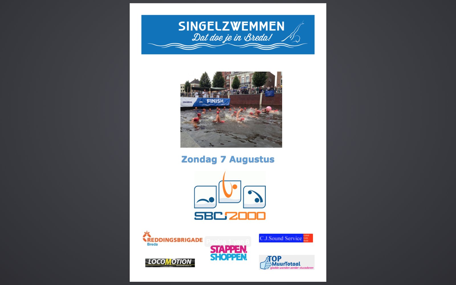 Op 7 augustus zal zwemvereniging SBC2000 voor de derde achtereenvolgende keer het evenement Singelzwemmen organiseren, waarbij wedstrijdzwemmers, triatleten en recreanten op 1 of meerdere afstanden hun krachten meten in het Bredaase water.