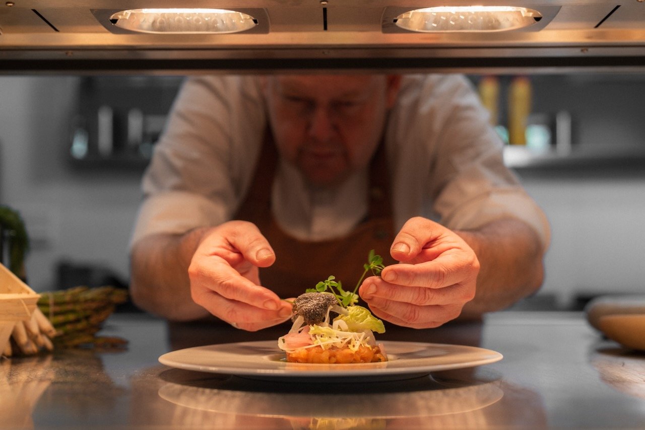 Het interieur ademt sfeer en beleving: zachte aardse tinten, luxe materialen zoals marmer, een stijlvolle wijnkelder, grote ronde banken voor gezelschappen en verschillende gezellige hoekjes die uitnodigen om langer te blijven zitten.